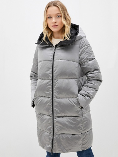 Двустороннее пальто прямого силуэта на натуральном пуху. Универсальная модель для любого образа, можно носить черной или серебристой стороной. Воротник-стойка, застежка на потайную молнию и кнопки.