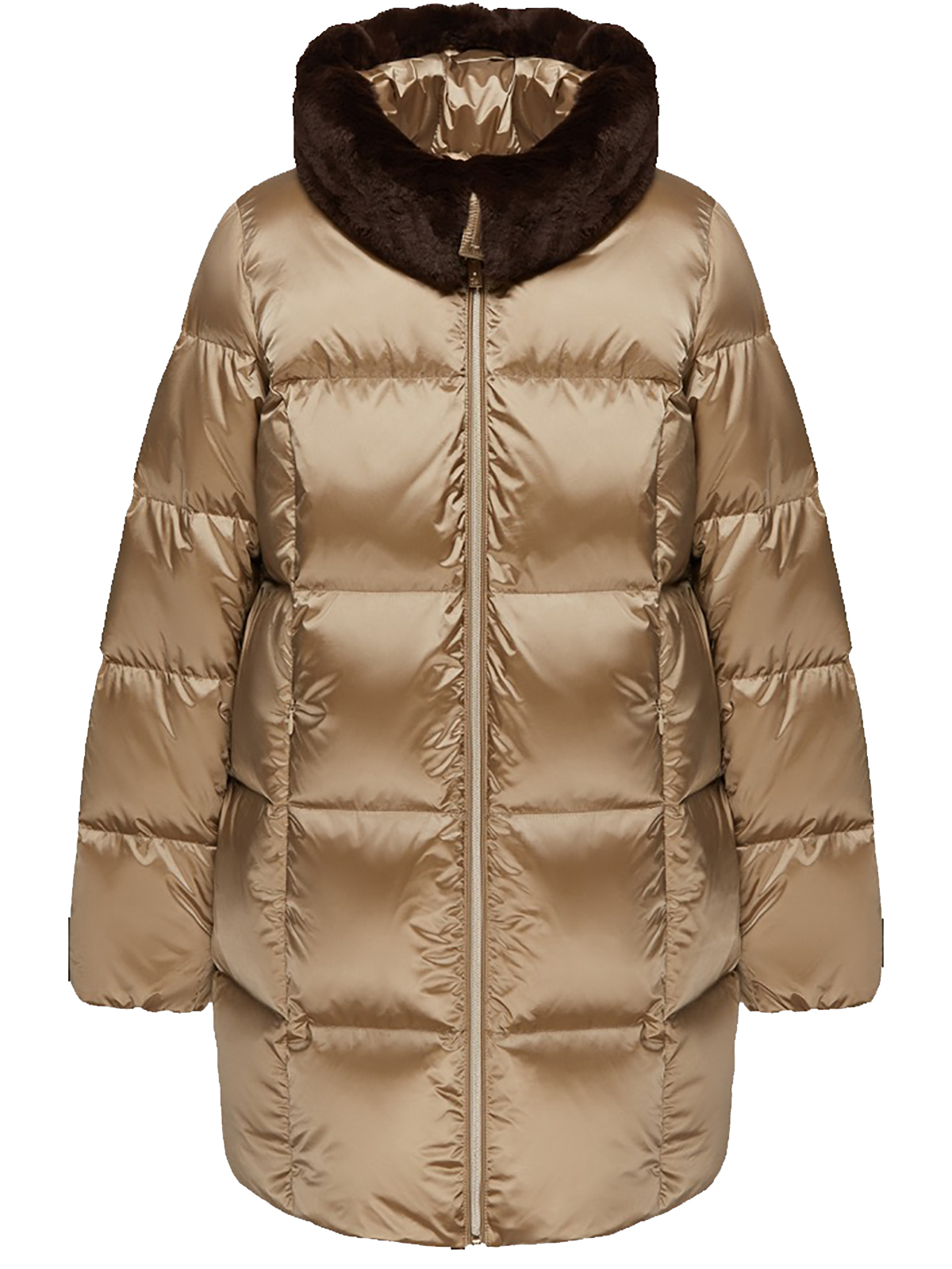 Стеганая зимняя куртка с пуховым наполнителем. Универсальная модель дополнит любой наряд. Воротник стойка со съемной меховой оттелкой, капюшон на молнии. Застежка на двустороннюю молнию. Два боковых кармана на молнии.