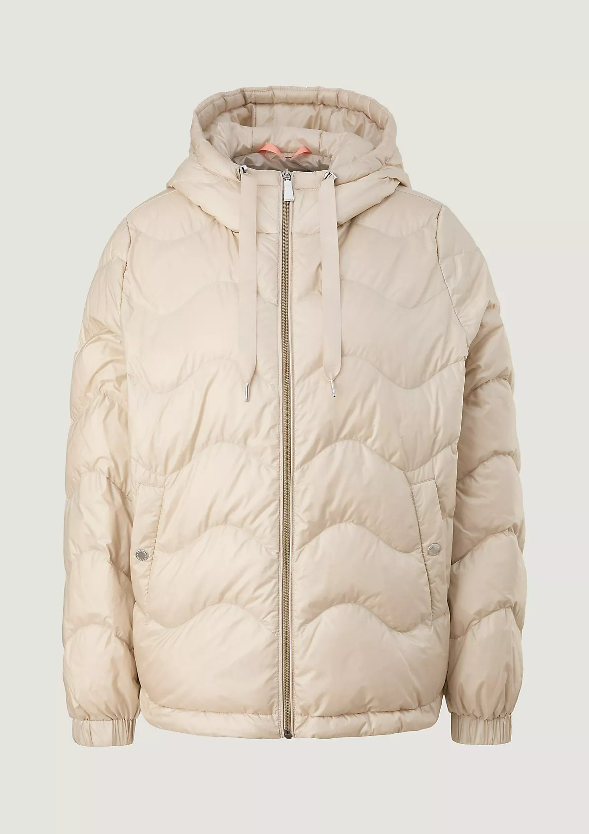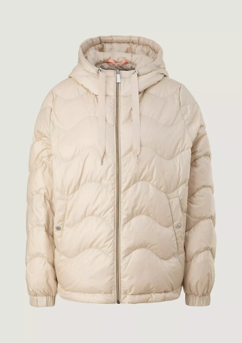 На сайте указаны российские размеры. Короткая куртка с капюшоном и стеганой отделкой. Подкладка: подкладка из тафты. Наполнитель: пух и перья. Длинные рукава, эластичные манжеты. Длина спины: 64 см в размере 42 Рост модели: 178 см