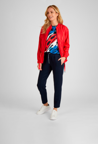 На сайте указаны российские размеры. Привлекательная куртка с накладными карманами и талией привлекает внимание. Кулиска на талии и воротник-стойка создают спортивный образ. Эта куртка отлично сочетается с современным нарядом с джинсами и кроссовками. Длина по спинке от плеча для размера 46: 66 см. Рост модели 176 см.
