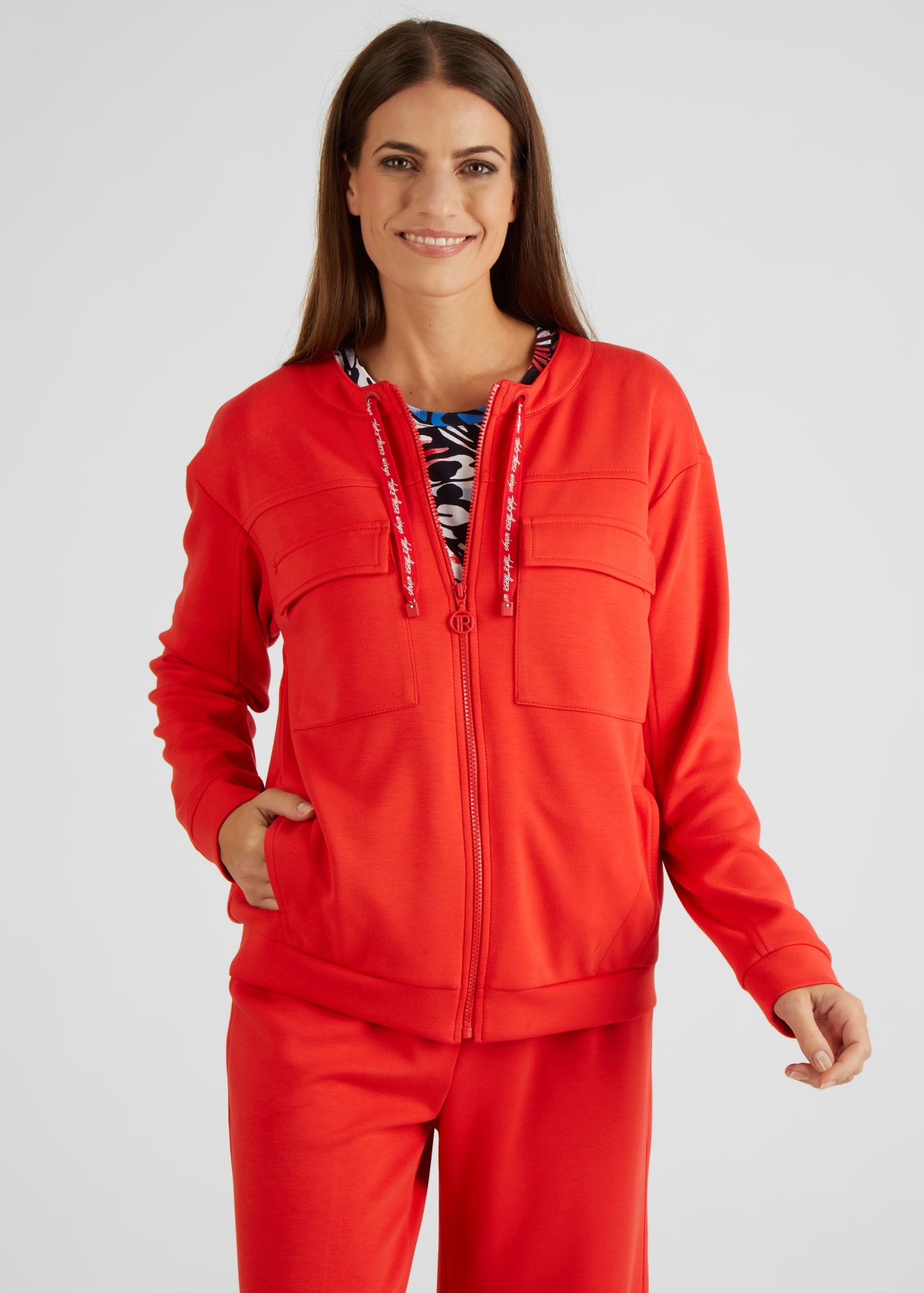 На сайте указаны российские размеры. Однотонная куртка с молнией и нагрудными карманами просто необходима. Подвеска на молнии дополняет куртку в деталях, а надпись на шнурке тональная и блестящая. Эта куртка отлично сочетается с современным нарядом с джинсами и кроссовками. Длина по спинке от плеча для размера 46: 62 см. Рост модели 176 см.