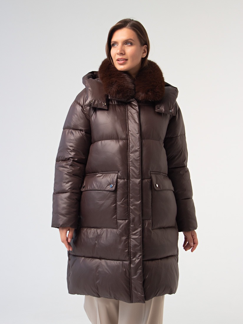 Парка свободного силуэта с накладными карманами из модного нейлона с деликатным блеском. В этой куртке будет комфортно во время прогулки при температуре до -25 градусов. Куртка выполнена по эко технологиям- утеплитель био-пух для этого изделия получили из 15 переработанных пластиковых бутылок, уютный сьемный воротник – экомех, имитирующий песца. Для комфорта сделаны эластичные внутренние манжеты и утепленные двойные карманы, съемный капюшон, противоветровая планка спереди. Модель выполнена в двух расцветках – черный с подкладкой фуксия и кофейный с подкладкой в тон верха. Воротник из экомеха в тон верхней ткани. Длина: 98 см. Утеплитель: 290 грамм/м2