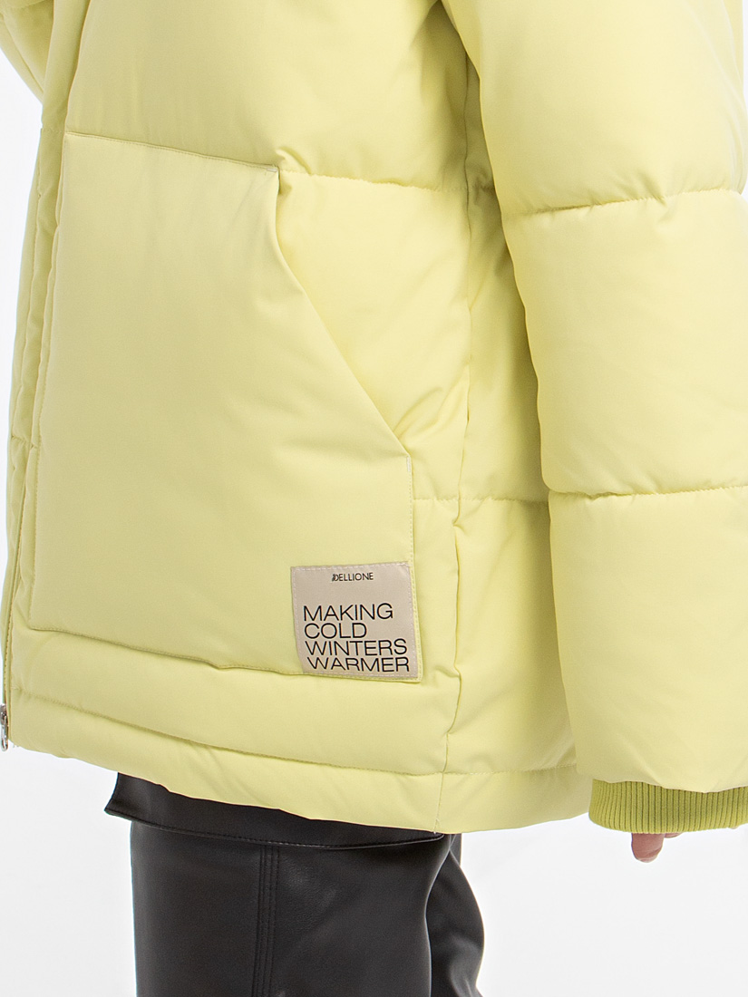 Для пошива яркого стеганого пуховика использовали плотную матовую ткань с внутренней пропиткой, которая не промокает и не продувается ветром. Дополнительную защиту от ветра обеспечивают глубокий съемный капюшон и регулируемая эластичная кулиска понизу, вязаные манжеты. Большие накладные карманы – тренд сезона, на левом кармане тканная эмблема с логотипом. Куртка силуэта оверсайз,для тех кто любит свободу движений. Длина: 73 см. Утеплитель: 280 грамм/м2