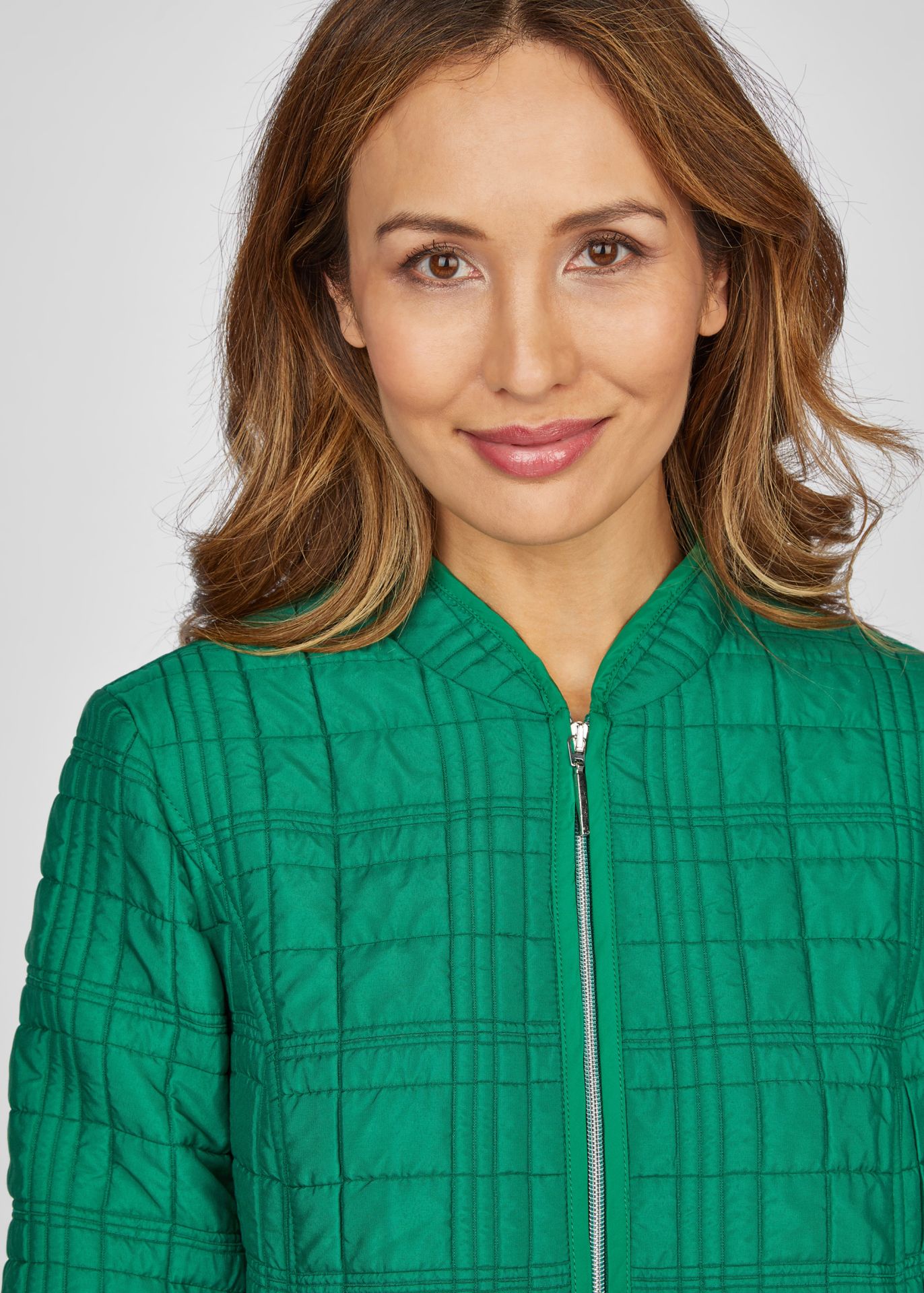 Легкая куртка со структурированной поверхностью – стильный предмет одежды, сочетающий в себе функциональность и модный дизайн. Небольшой воротник-стойка придает элегантный вид. Длинные рукава обеспечивают дополнительный комфорт и тепло в прохладные дни. Практичная молния позволяет легко надевать и снимать куртку, ее можно открыть или закрыть по мере необходимости. Также есть два кармана на молнии. Длина спинки от плеча для 44 размера: 62см.