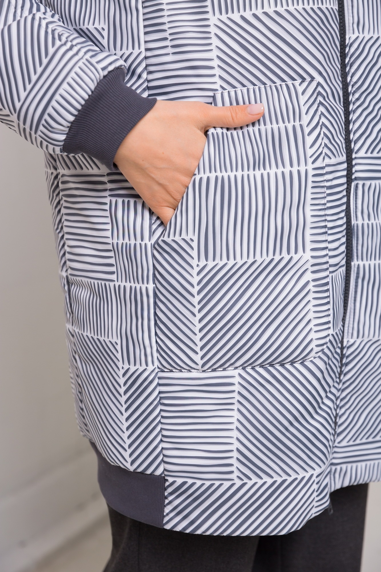 Эксклюзивная модель удлиненной куртки из полиэфира с подвязами по рукавам и низу изделия, что придает ей легкую округлость. Неповторимость - в авторском принте, который нанесен на полиэфир. В изделии использован 100-граммовый утеплитель и двухзамковая молния для удобства.