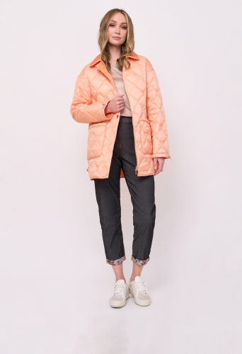 Детали: застежка молния и кнопки, без капюшона, рукава длинные, покрой прямой, без рисунка, утеплитель полиэстер, карманы накладные,без опушки, кулиска по низу. золотистая фурнитура. Длина по спинке: 76 см. Плотность утеплителя: 80 см.