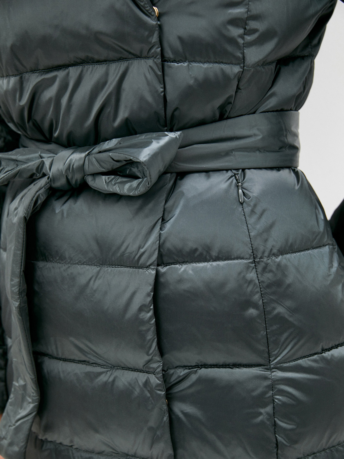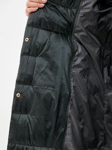 Стеганое пальто с наполнителем пух-перо. Застежка на молнии, ветрозащитный планка на кнопках, несъемный капюшон, боковые прорезные карманы с листочкой. В комплекте идет пояс из основного материала изделия. Пальто хорошо защитит от холода и дополнит образ в городском стиле.