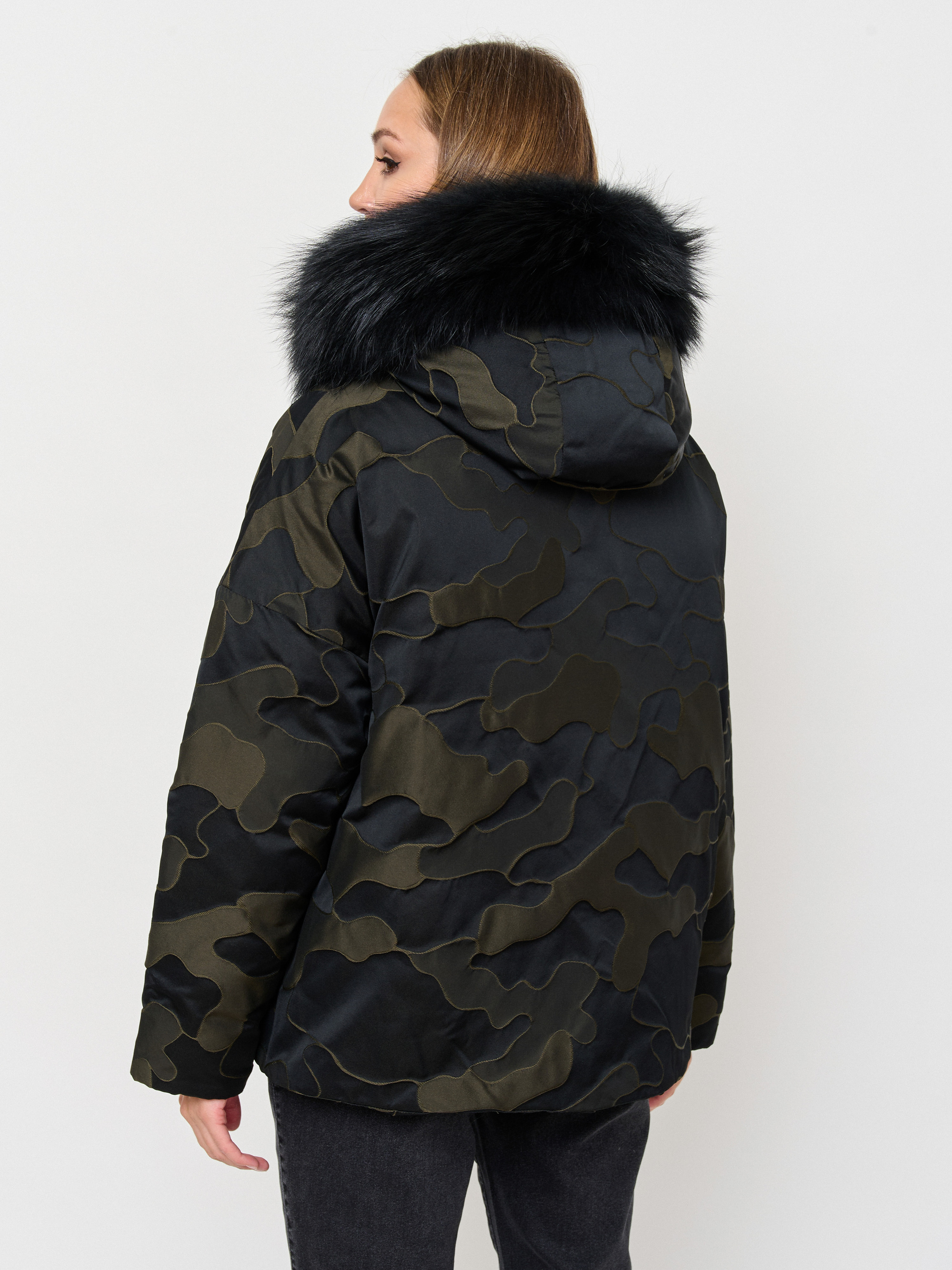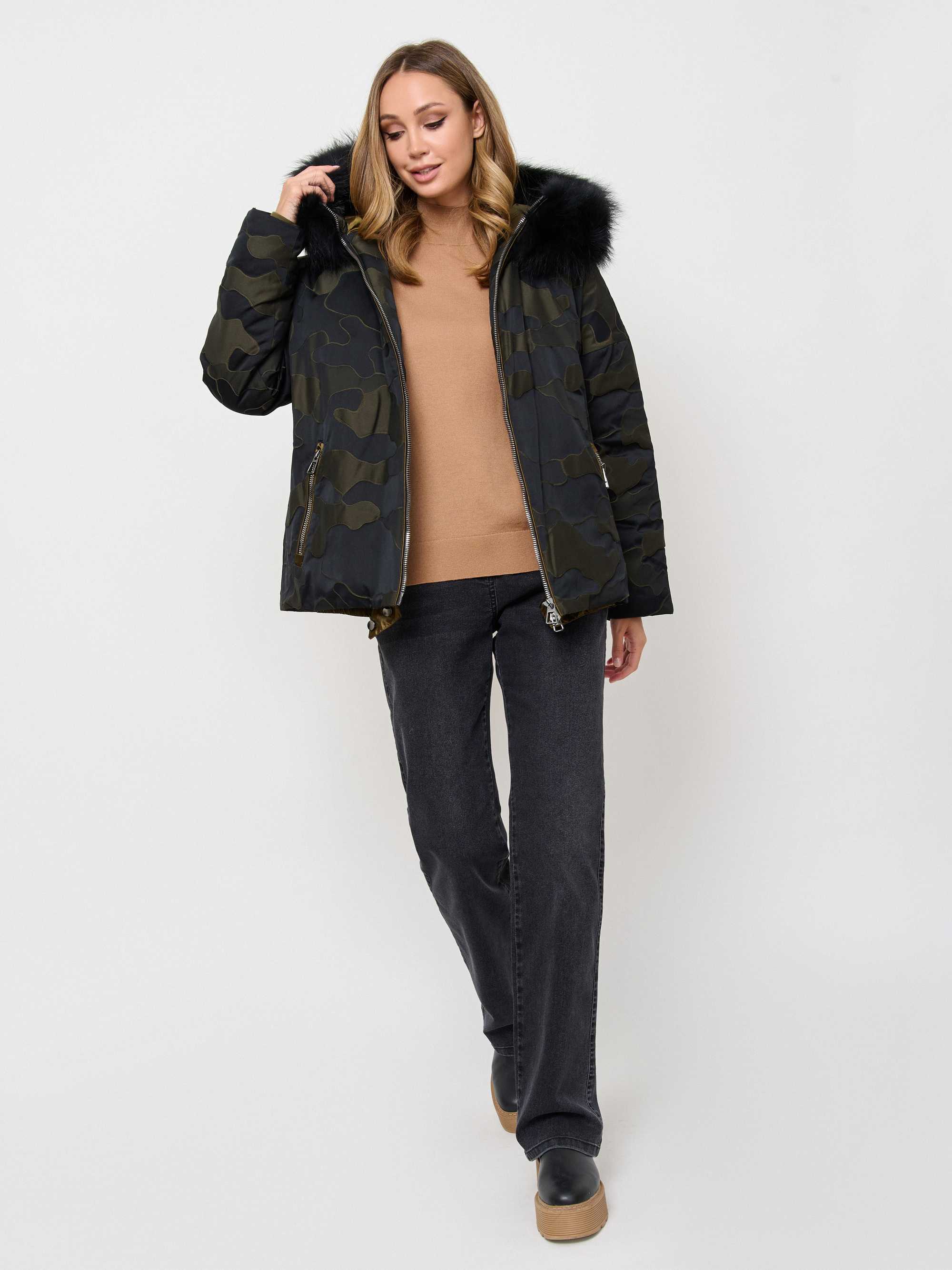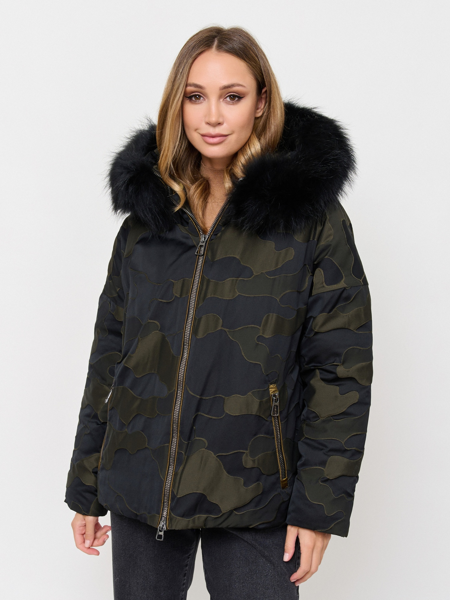 Куртка-бомбер из жаккардовой ткани с наполнителем DuPont Sorona (био-пух), предназначена для температурного диапазонаот -10°C до -20°C. Ткань верха - 100% полиэстер цвета хаки с жаккардовой структурой; подкладка - 100% нейлон; утеплитель - cинтепух DuPont Sorona (100% полиэстер). Детали: застежка молния, опции капюшона несъемный капюшон, рукава длинные, покрой прямой, рисунок камуфляж, утеплитель полиэстер, карманы прорезные, опции опушки съемная опушка.