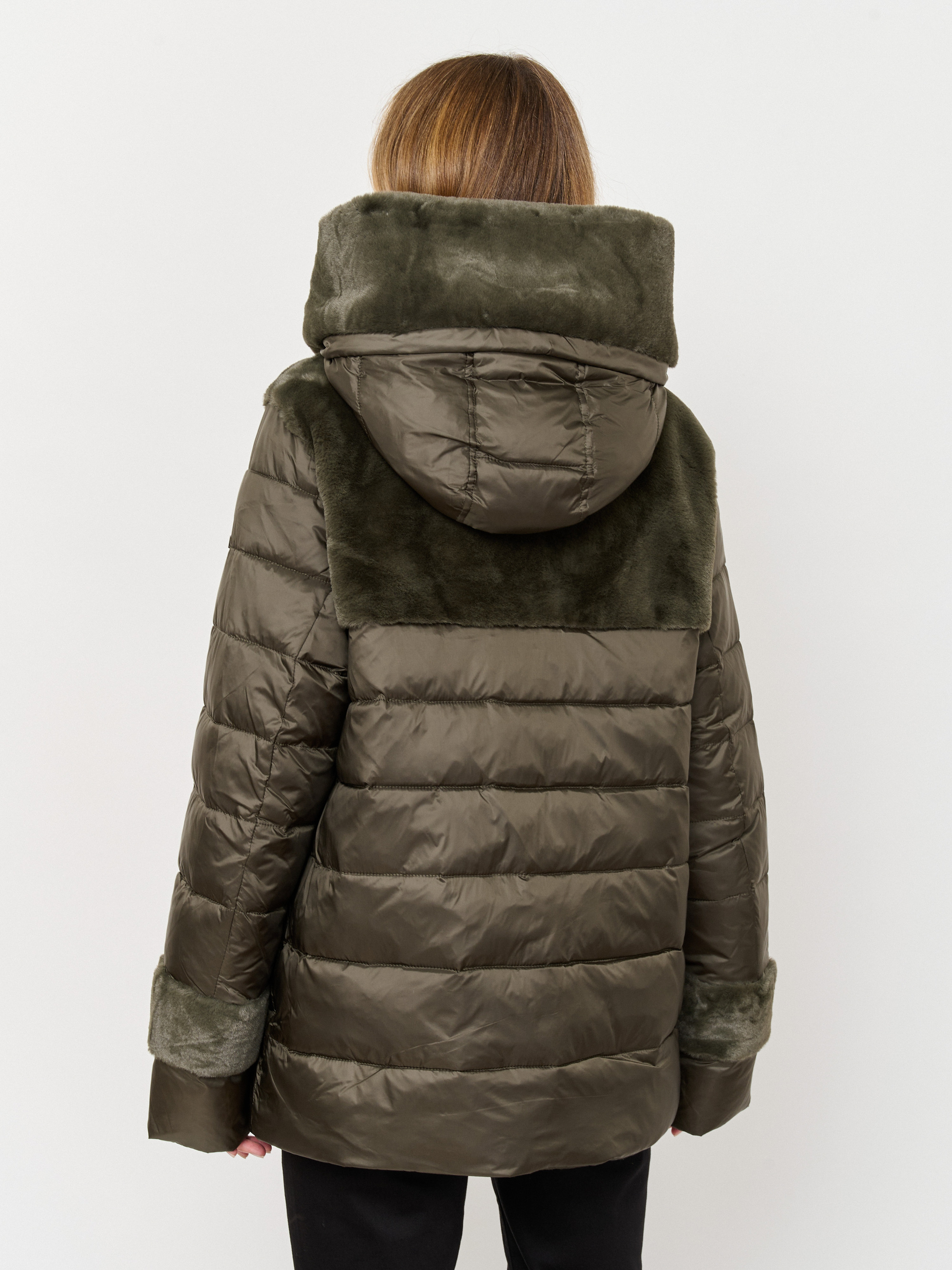 Куртка с меховой отделкой предназначена для температурного диапазона от 0°C до -10°C. Ткань верха - 100% нейлон глубокого зелёного оттенка; экомех - 100% полиэстер, имитация кролик-рекс; подкладка - матовый 100% нейлон бежевого цвета; утеплитель - DuPont Sorona. Детали: застежка молния, опции капюшона несъемный капюшон, рукава длинные, покрой прямой, без рисунка, утеплитель полиэстер, карманы в шве, опции опушки несъемная опушка.