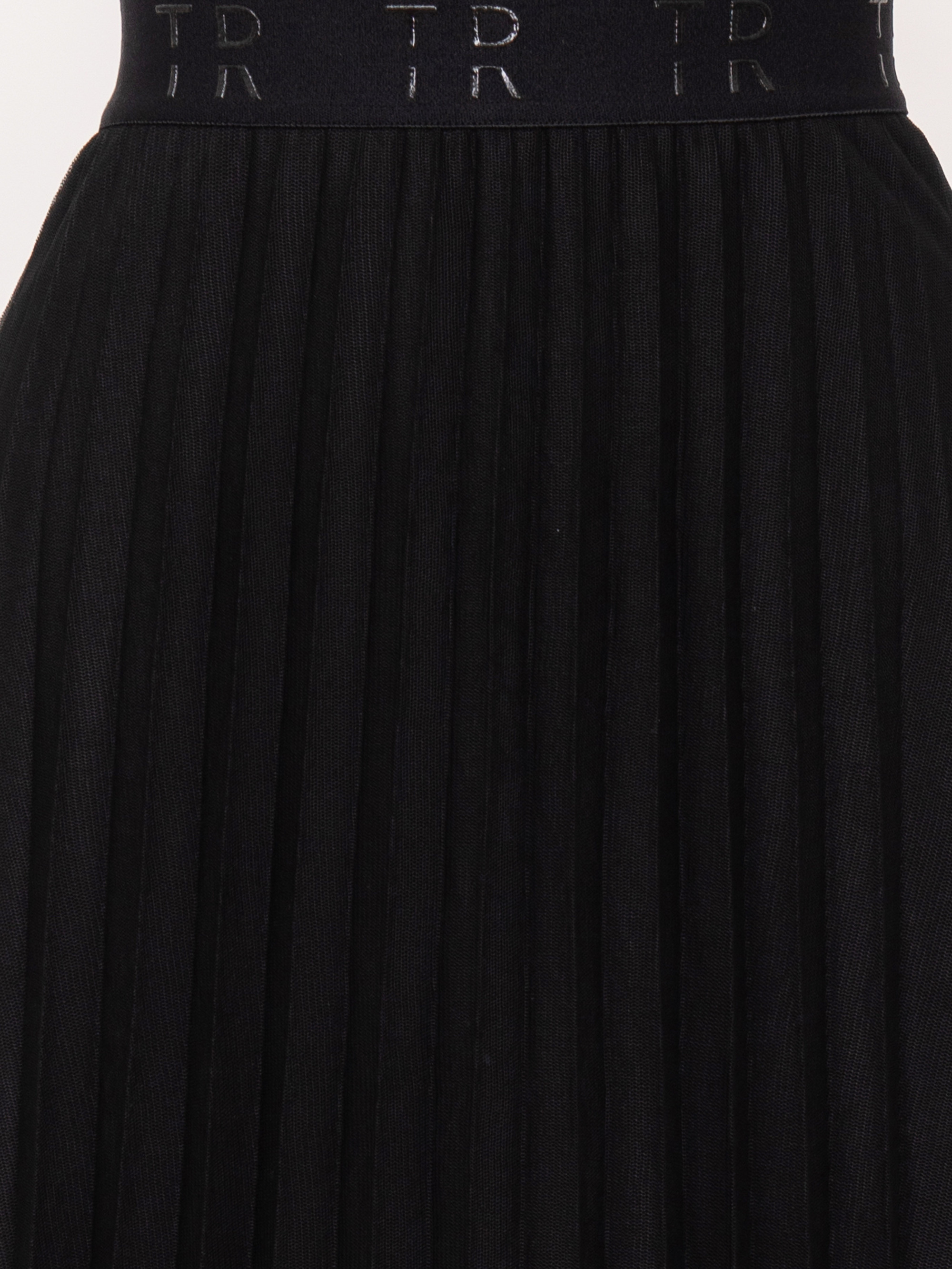 На сайте указаны российские размеры. Черная плиссированная миди юбка трапеция на резинке. Рост модели: 175 см. Длина юбки: 70 см.