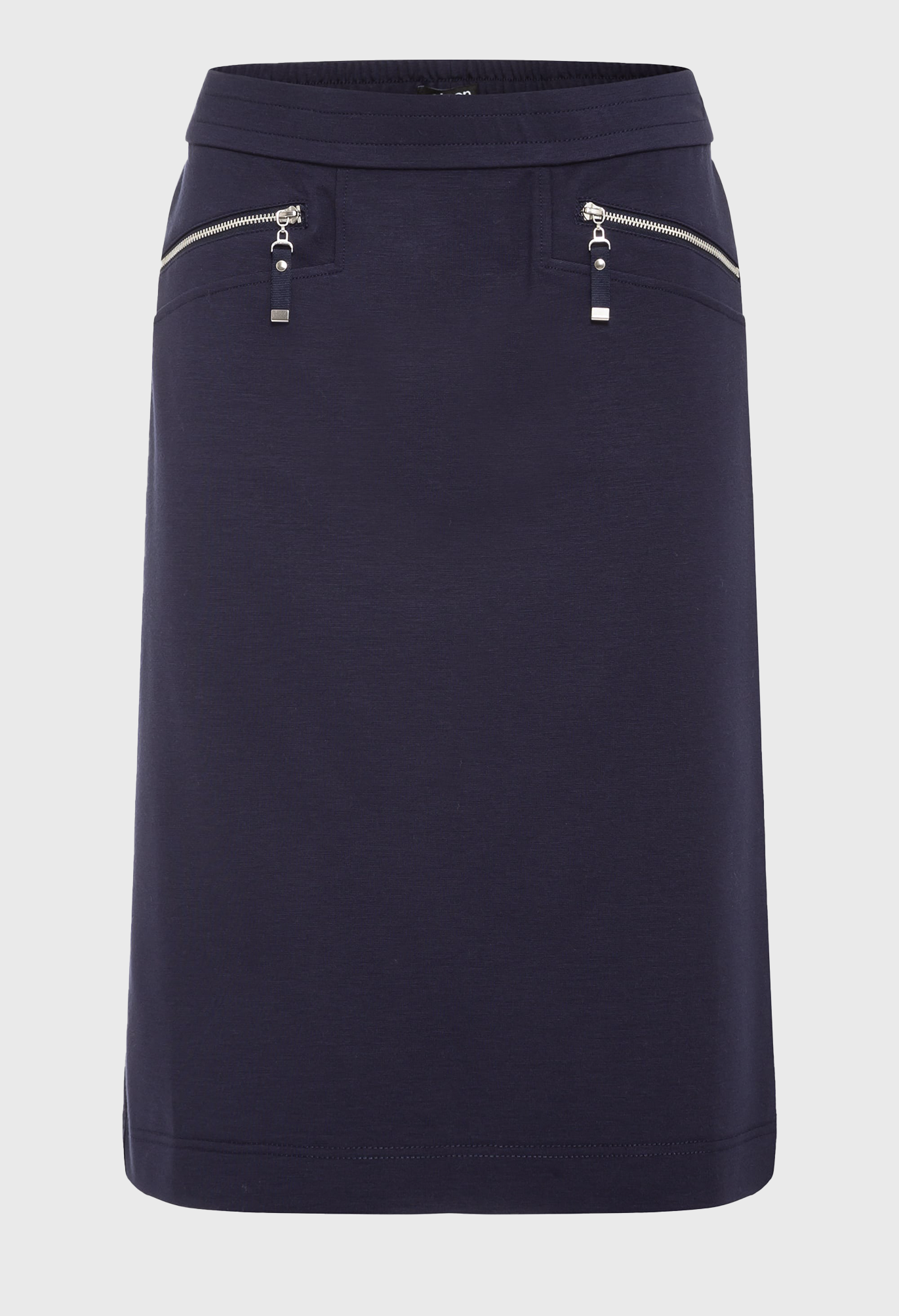 Модель прямой юбки, которая подойдет как для работы, так и для выходных. Эластичный пояс для удобства и два передних кармана на молнии контрастного цвета для дополнительного стиля. Удобная для растягивания конструкция обеспечивает комфорт в течение всего дня.