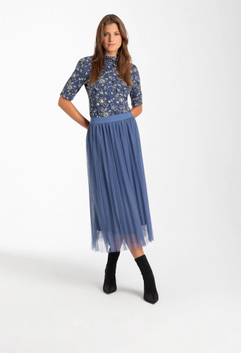 Женственную тюлевую юбку со складками и эластичным поясом можно сочетать как с повседневной толстовкой, так и с элегантной атласной блузкой. Несложная форма без шнуровки с эластичным поясом. Современная длина миди. Плиссированные складки, на подкладке из джерси. Длина по размеру 42 - 84 см.