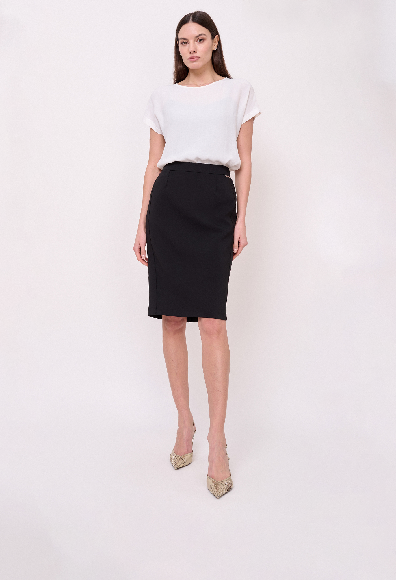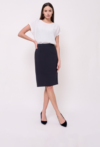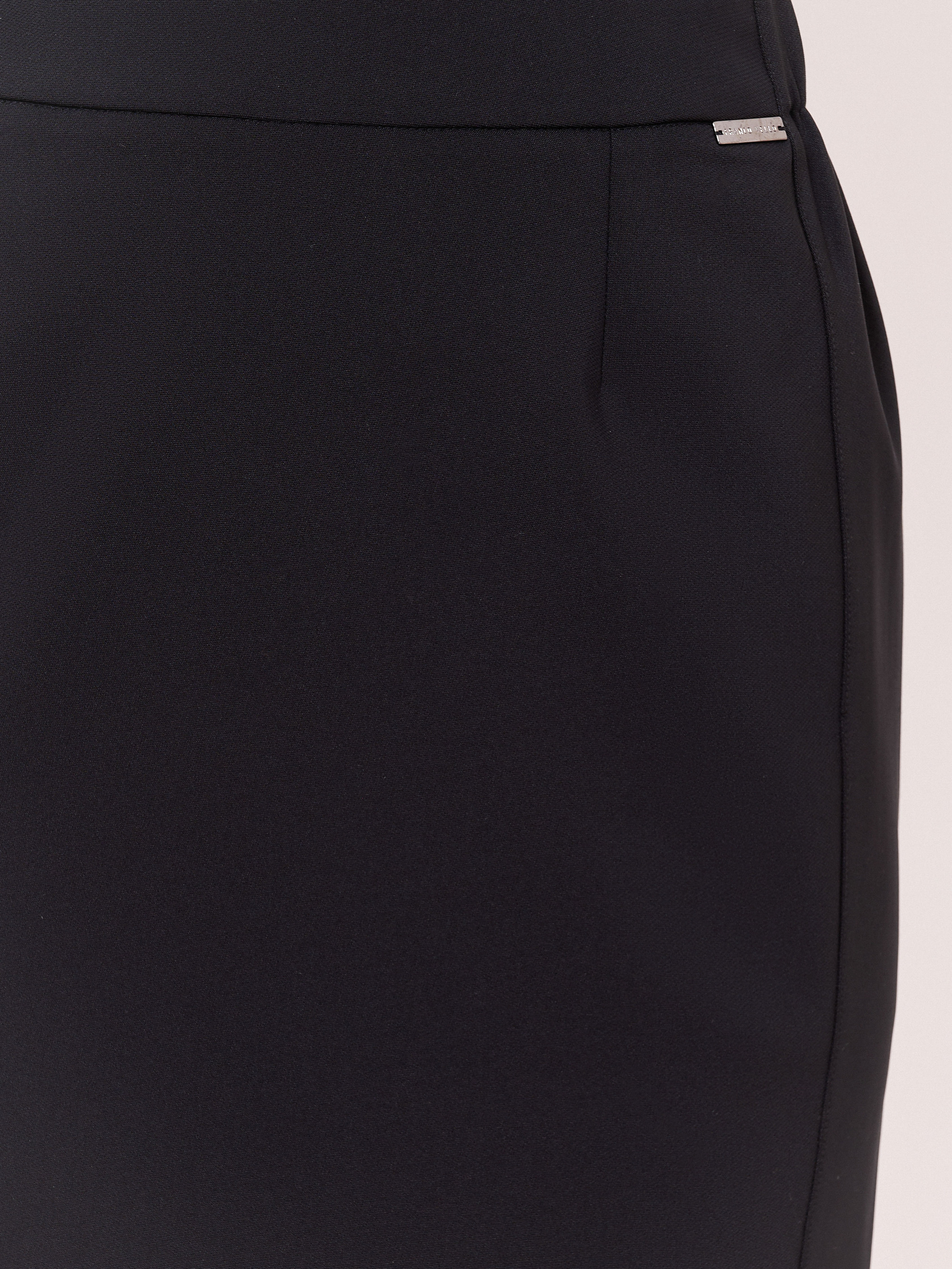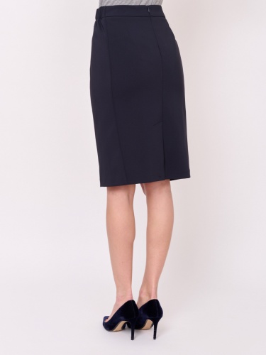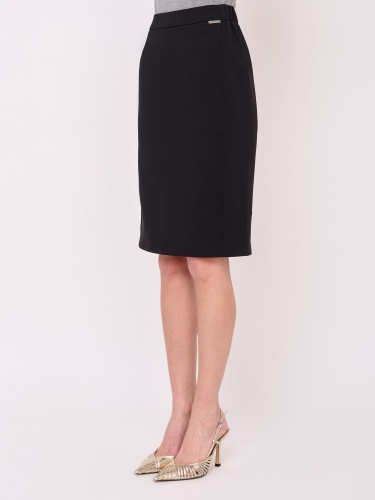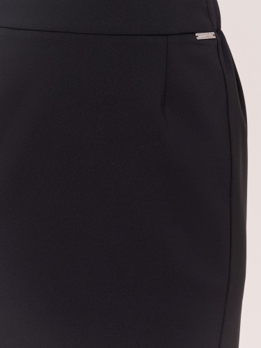 Застежка молния, покрой прямой, эластичные вставки сбоков по линии талии, посадка средняя, без рисунка, без карманов, конструктивные элементы шлица, модель юбки прямая, длина юбки миди.