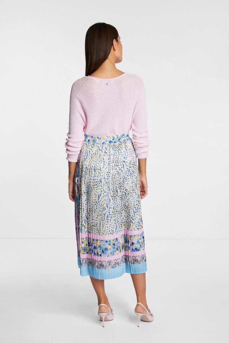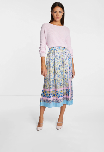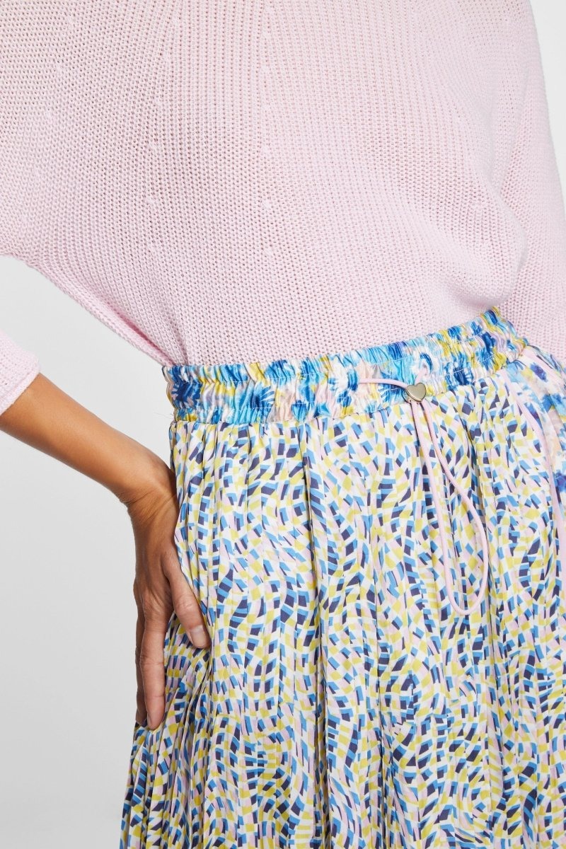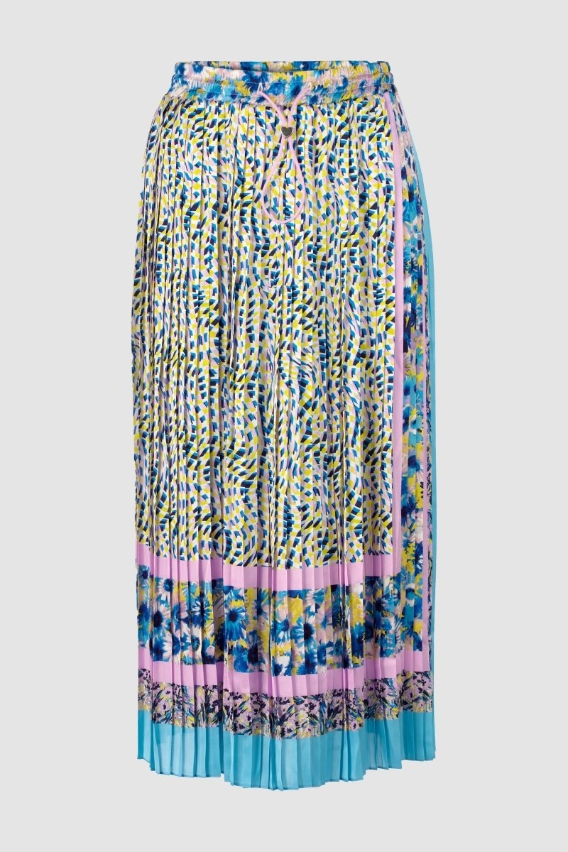 Яркое сочетание узоров сделает эту плиссированную юбку изюминкой вашего летнего гардероба. Струящийся материал слегка блестит и соблазнительно играет вокруг ваших ног. Эластичный пояс обеспечивает комфорт в течение всего дня. Длина для размера 42: 82 см.