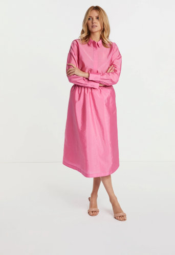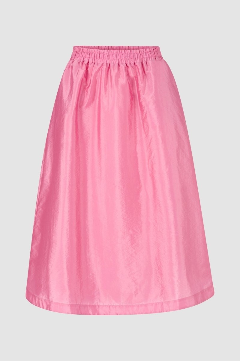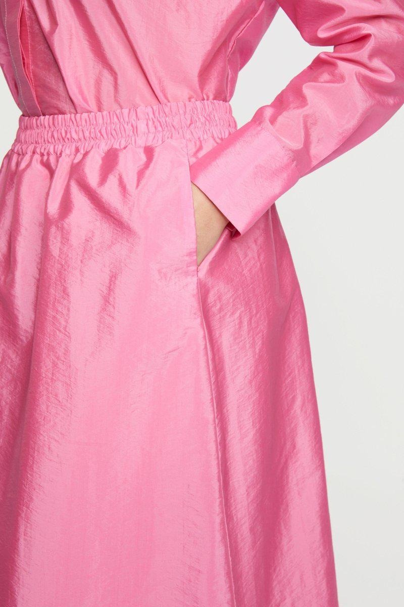 Широкая юбка длины миди из слегка блестящего несложного парашютного шелка — удобный повседневный образ. Боковые карманы и эластичный пояс гарантируют комфорт. Длина для размера 42: 78 см.
