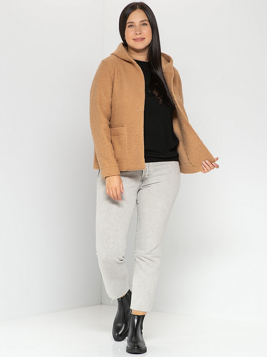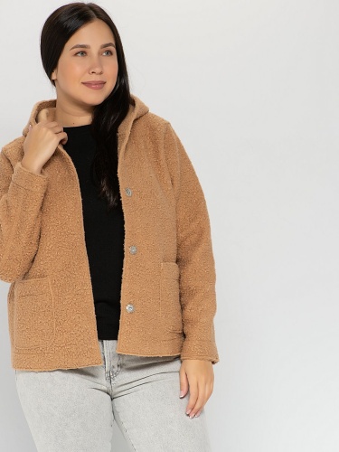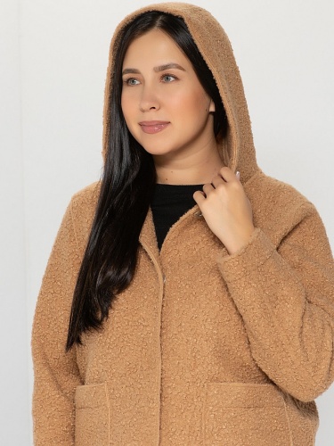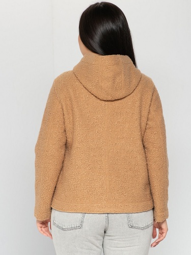 Плюшевый жакет с капюшоном - это вещь, которая дополнит любой комплект одежды! Прямой крой, втачные рукава полной длины, накладные карманы спереди. Акцент модели - швы, выполненные наружу. Все детали этой модели служат созданию суперсовременного образа.