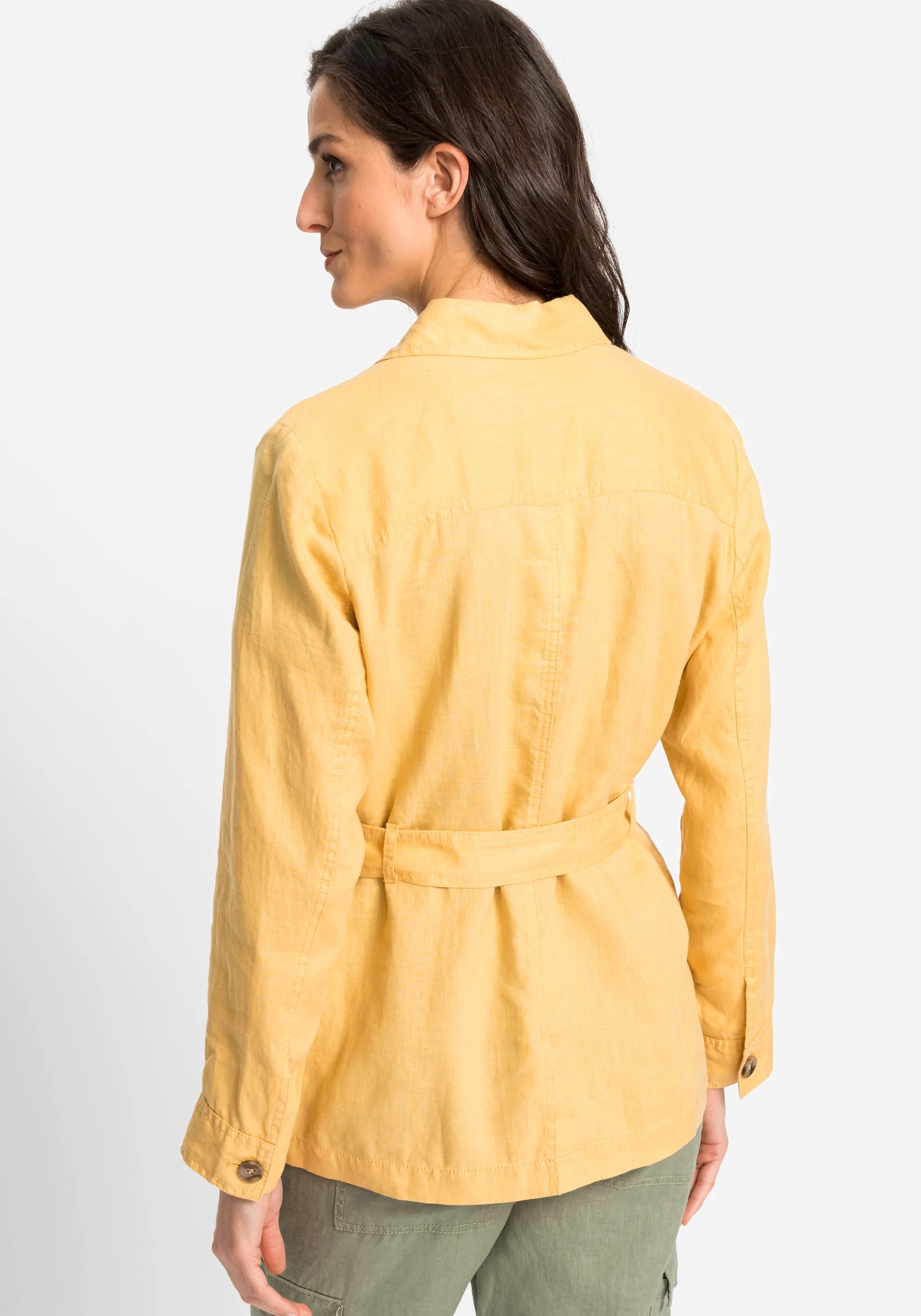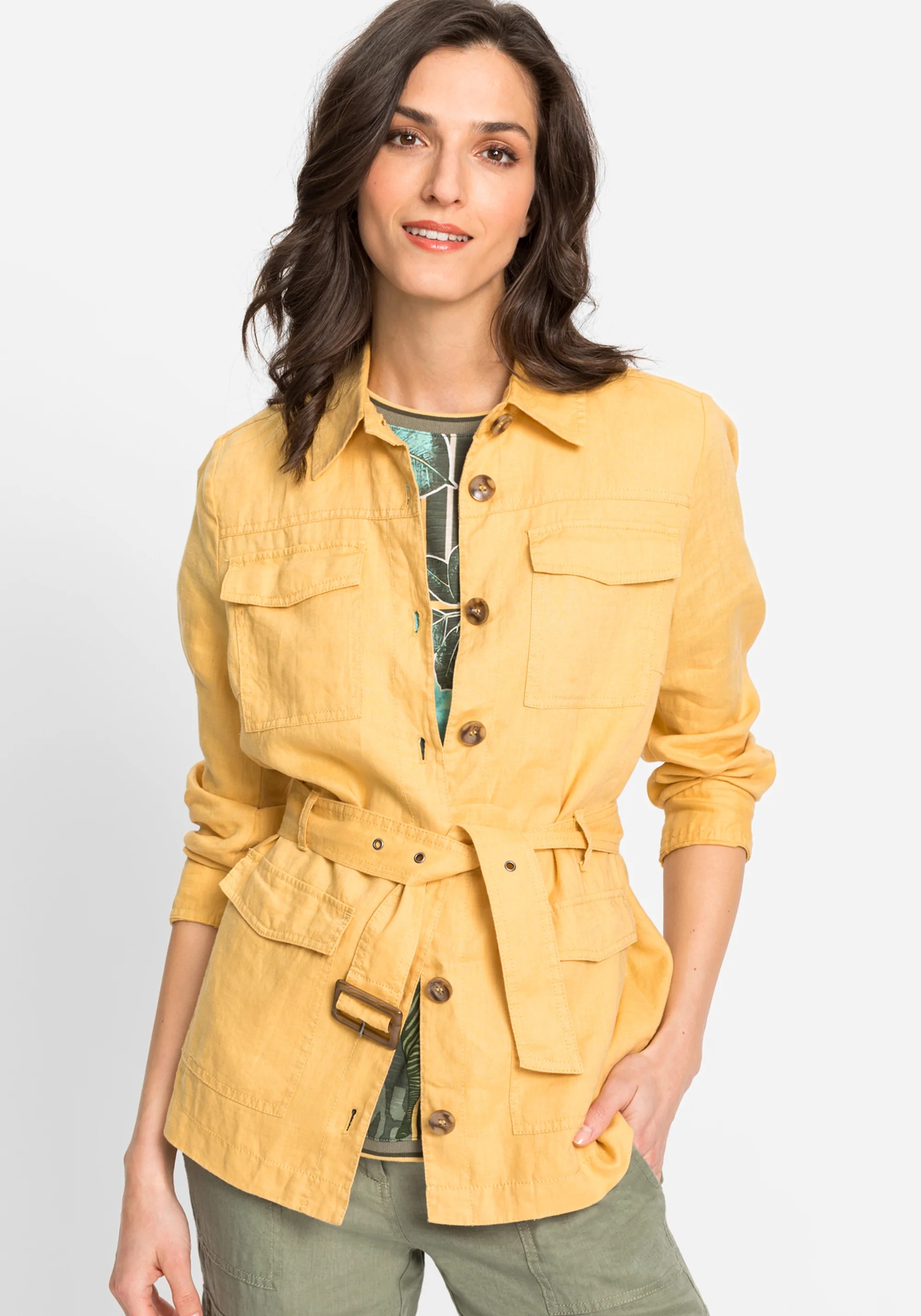 На сайте представлены Российские размеры. Жакет с воротником и планкой на пуговицах по всей длине, а также особая деталь на поясном ремне с большой черепаховой пряжкой делают эту куртку по-настоящему эффектной. Четыре накладных кармана с клапанами дополняют жакет.