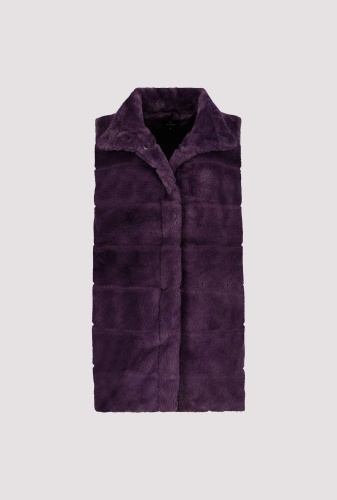 На сайте указаны российские размеры. Длинный жилет из искусственного меха с воротником-стойкой. С приятным мягким жилетом из меха от monari вы сможете создать стильный образ в кратчайшие сроки. Длинная модель прямого кроя с воротником-стойкой, планкой на потайных кнопках и боковыми карманами идеально подходит для создания повседневных образов с платьями и брюками. Модель ростом 179 см.