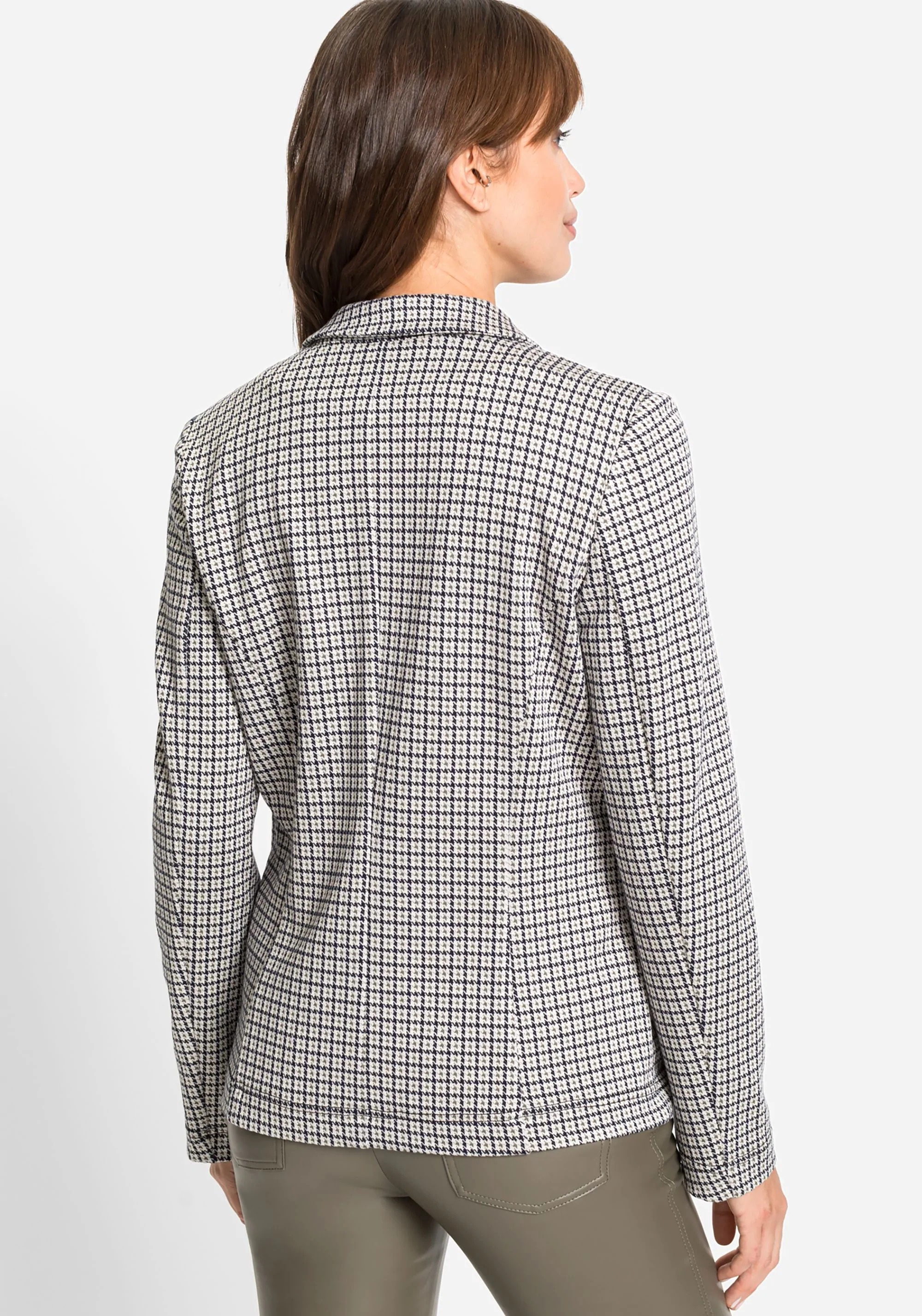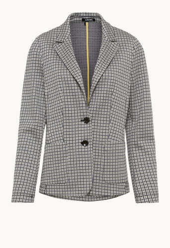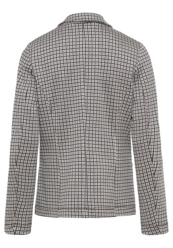 На сайте указаны российские размеры. Трикотажный жакет из джерси обеспечивает комфорт в течение всего дня, а классический узор «гусиная лапка» и индивидуальный внешний вид делают этот блейзер актуальным в этом сезоне. Сделайте свой образ деловым, надев свою любимую блузку и туфли-лодочки, или дополните его джинсами и кроссовками.