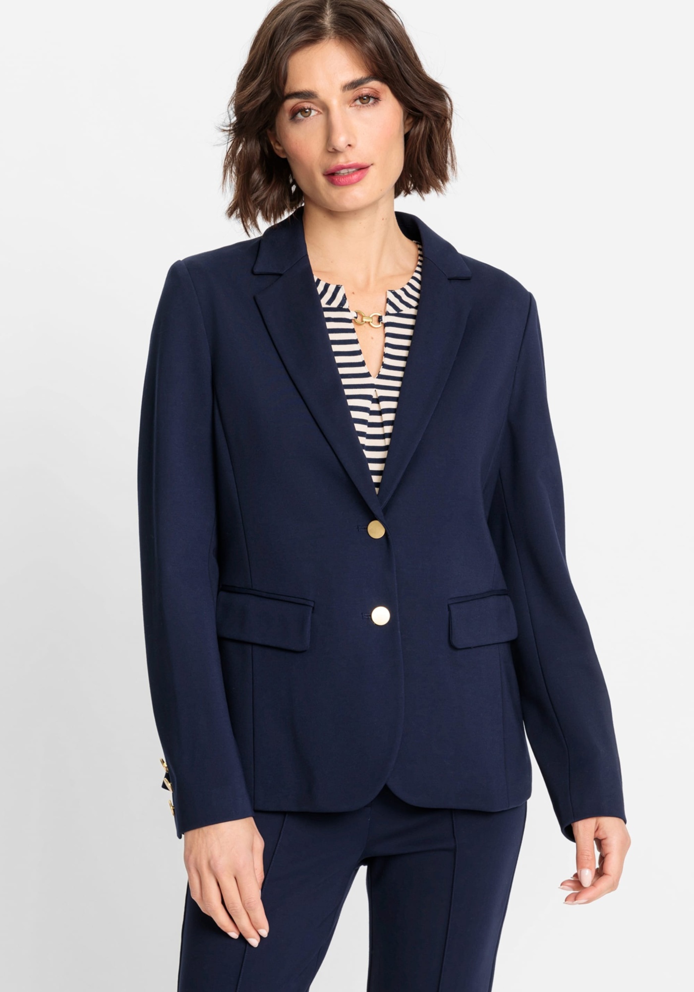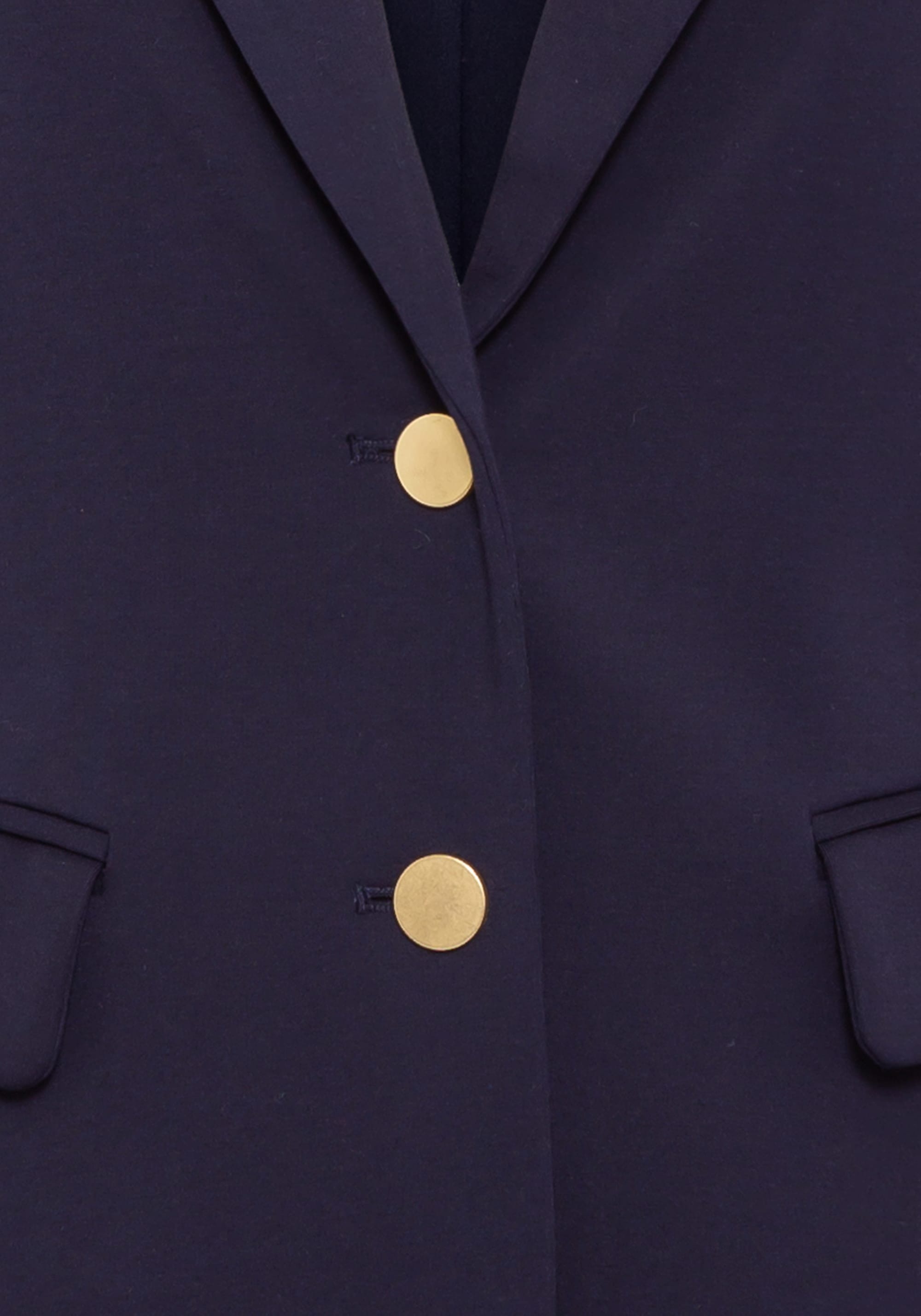 Пиджак с достаточной степенью эластичности, обеспечивающей комфорт на протяжении всего дня! Однобортный жакет с воротником-стойкой, двумя передними карманами, индивидуальными швами для придания формы и красивыми пуговицами матового золотого цвета.