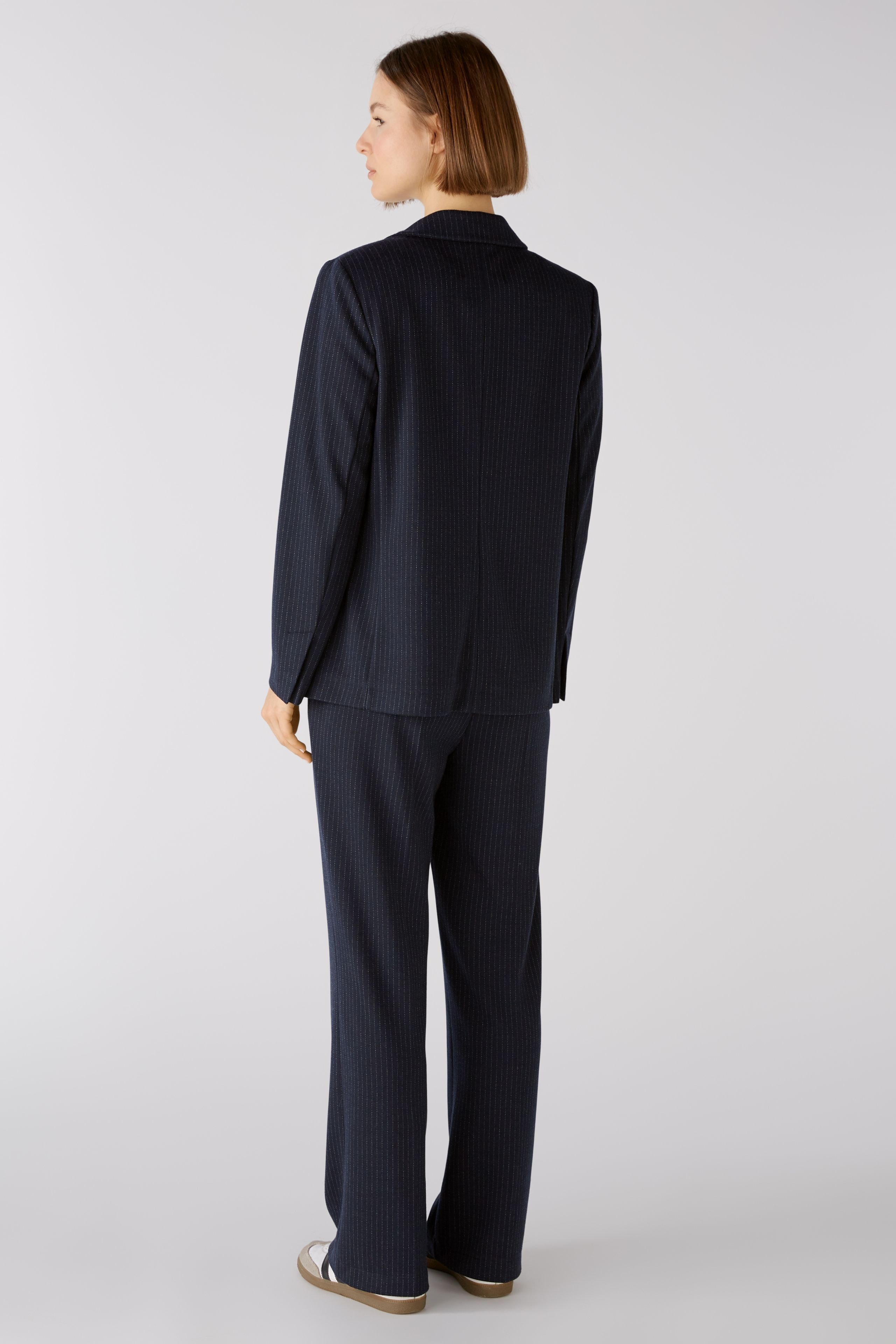 Блейзер из плотного трикотажа. Прямой крой, стандартная длина. Однобортный с воротником с лацканами. Без подкладки. С карманом на клапане и подплечниками. Длина для размера 42 - 69 см.
