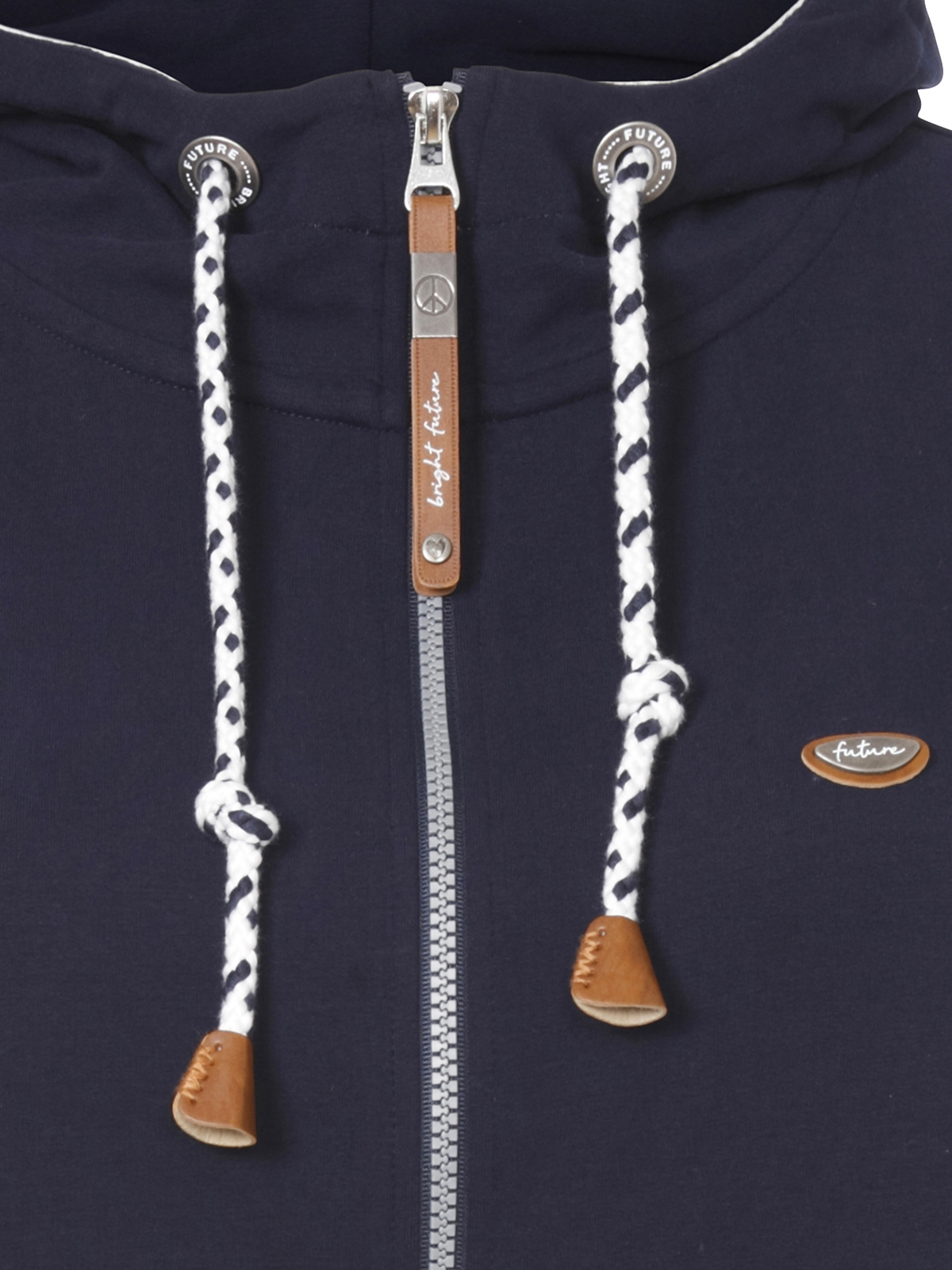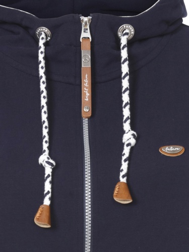 Однотонный блейзер в спортивном стиле. Застежка на молнию, капюшон на кулиске. Длинный втачной рукав с эластичной манжетой. Также эластичная резинка по низу изделия. Блейзер подойдет для прогулки, спорта или повседневного образа.
