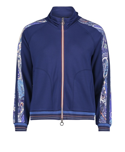 Блейзер в спортивном стиле выглядит очень модно и современно! Прямой покрой, воротник-стойка, застежка-молния, длинные рукава реглан. Трикотажная отделка манжет и низа изделия. Завершающая деталь дизайна - контрастные вставки вдоль рукавов. Материал из вискозной смеси приятен к телу и обеспечивает комфорт. Этот блейзер - прекрасный выбор для прогулки прохладным летним вечером.